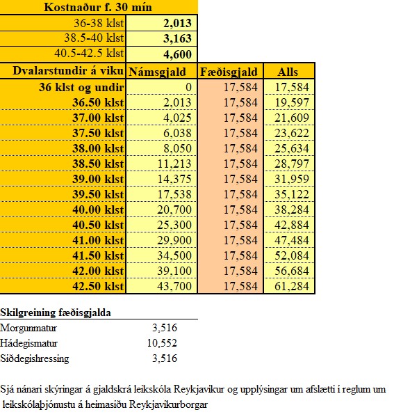 Gjaldskrá Vinagarðs frá 1. apríl 2026